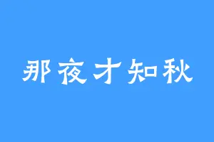 那夜才知秋